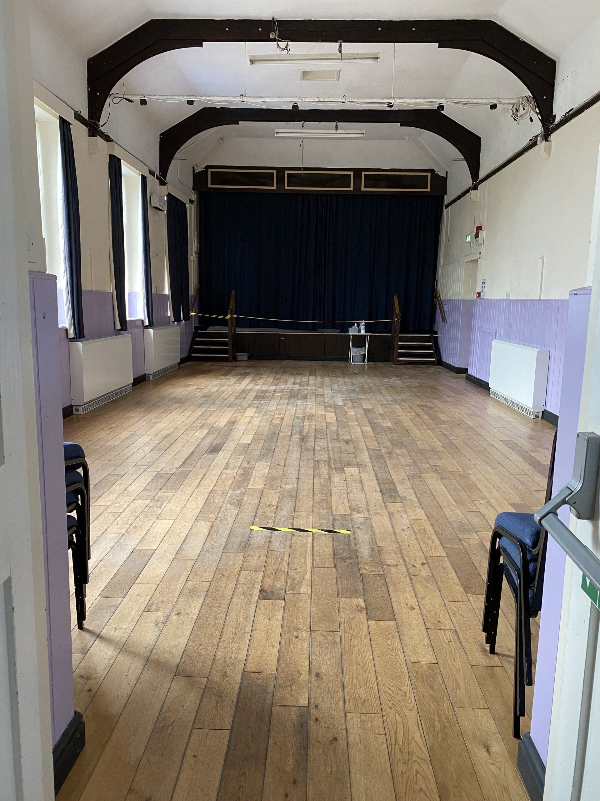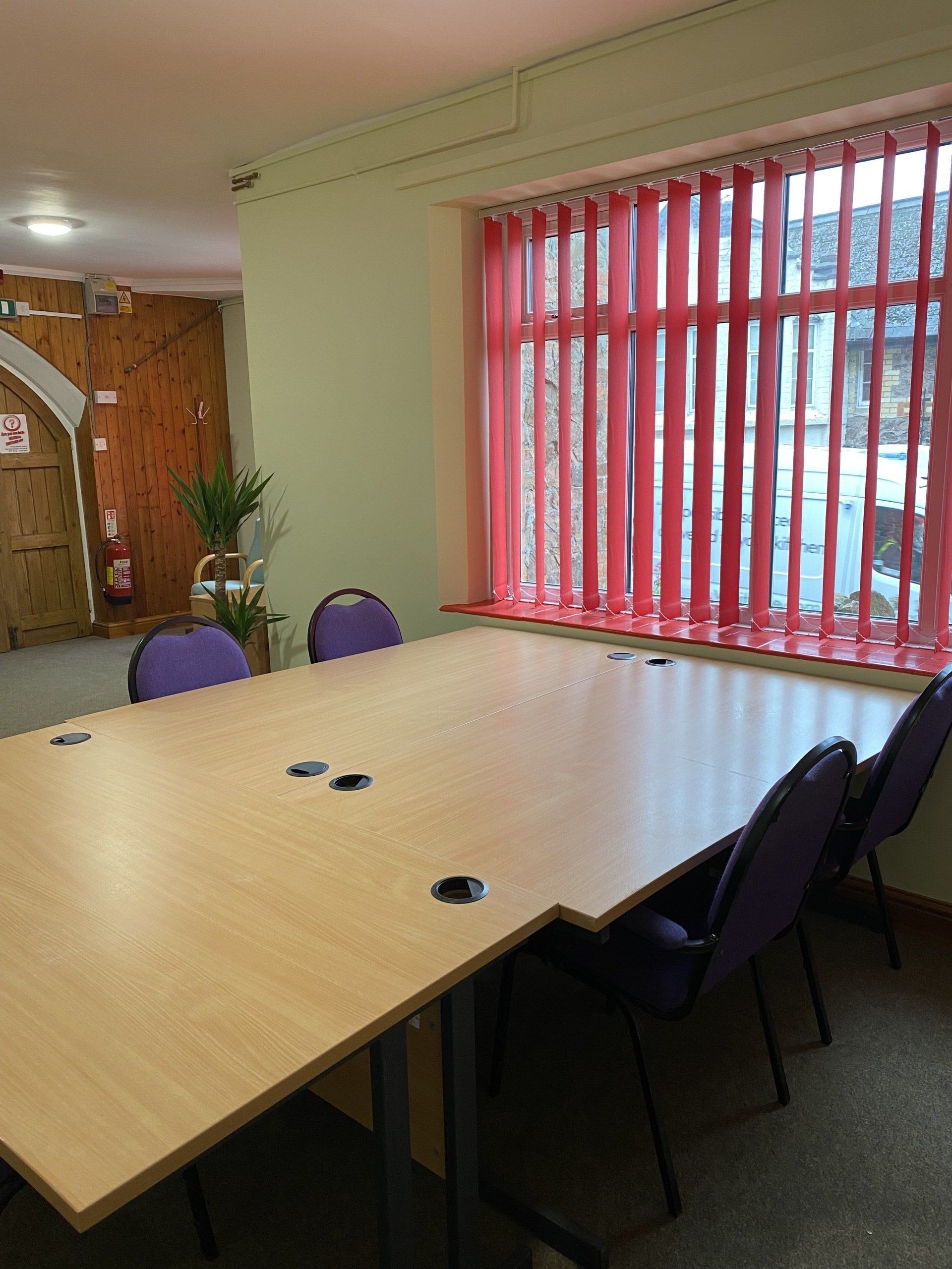 The Lower Hall (Fisher Hall) access is via the white door further along the main building. This room has recently been completely renovated with new paintwork, new lights, new carpet, new desks and new office chairs (arriving imminently!). There are 4 individual working spaces that can be hired per session for hot-desking or alternatively the whole communal space can be hired for meeting purposes. This is a quiet working environment with access to a WC. A coffee machine, wifi and heating are all available in this room to be used during the hire. The renovation will soon be complete with some additional technology available (smart whiteboard) for meetings.